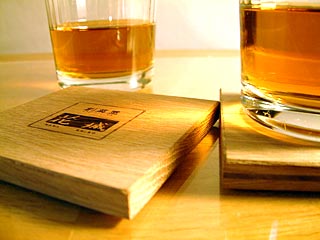 お店のロゴマークを入れたオーク・アクリルのオリジナルコースターです。アクリル蛍光はブラックライトに反応して美しい光を放ちます。